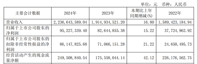 4月24日晚间,诺邦股份(603238)发布2024年度报告,2024年公司实现营业收入为22.37亿元,同比增长16.80%;归属于上市公司股东的净利润为0.95亿元,同比增长15.22%;归属于上市公司股东的扣除非经常性损益的净利润为0.86亿元,同比增长21.22%。