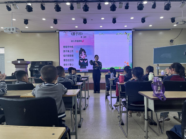 接着,由一年级李老师给大家带来了一节别具特色的课。李老师通过通俗易懂的语言,生动有趣的课堂活动让幼儿园的孩子们感受到了“游子吟”中的春晖校训“感恩”,孩子们激情满满,听得津津有味。