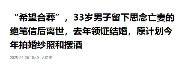男子因思念亡妻,留下绝笔信自杀,男子的遗愿刚刚曝出,看哭网友