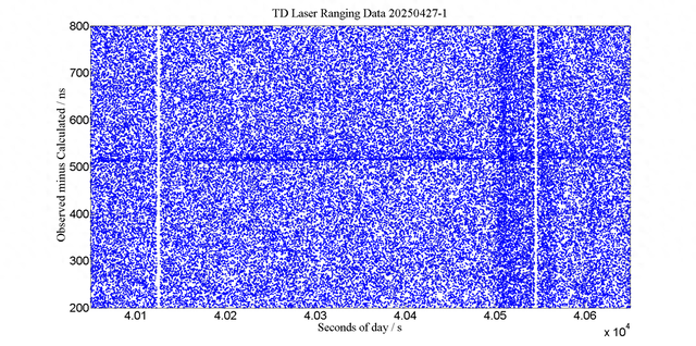 地月空间卫星进行激光测距相当于万米外瞄准一根头发丝,并实施精密跟踪与信号捕获,白天受太阳光影响,微弱的卫星回波信号容易被淹没在强烈的背景噪声中,难以被准确识别和提取。以往,这项试验只能在光干扰较少的夜间进行。