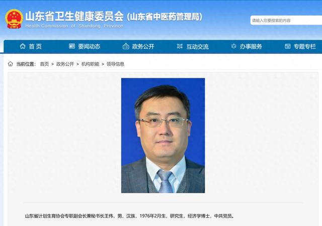 近日,山东省卫生健康委员会网站更新领导信息:王伟,已任山东省计划生育协会专职副会长兼秘书长。
