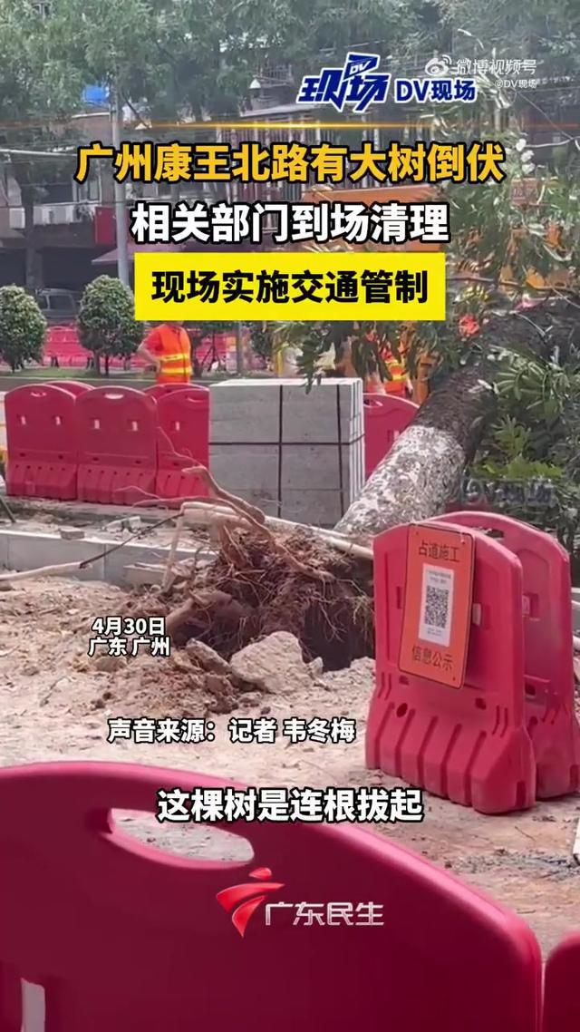 据@广州交通电台 9时29分消息,广州康王北路(北往南方向)有大树倒下,目前该路段行车缓慢,东风西路以及西华路转入康王北路(南行)有交通管制,请途经驾驶人士绕道荔湾路或人民路行驶。
