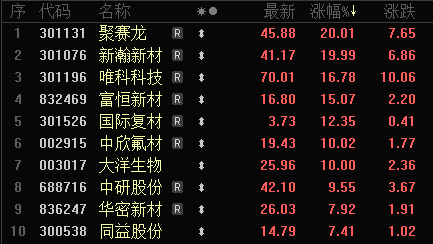 4月29日,PEEK材料概念集体大涨。截至收盘,聚赛龙、新瀚新材双双收获20CM涨停,此外,中欣氟材、大洋生物等股也实现10CM涨停。