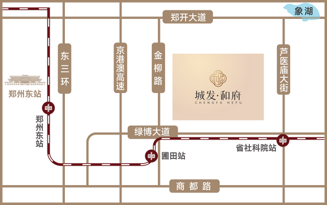 城发·和府项目精准落位郑东核芯,依托高铁东广场形成的交通枢纽优势,无缝对接全国高铁网络;临近地铁8号线社科院站,极大提升了居民出行效率,为区域发展带来强大的动力。