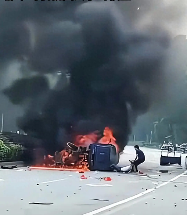 5月1日9时许,广东韶关始兴县太平镇永安大道路段突发一起交通事故,一辆小型轿车与一辆三轮摩托车相撞,造成三轮摩托车侧翻起火,现场情况十分危急。在这千钧一发之际,一名身着黑色短袖的青年,冒着火势蔓延的风险,上前奋力救援,徒手破窗,成功将被困的驾驶员救出。据悉,救人男子名叫钟威,是始兴县沈所镇农业办主任,是一名党员。