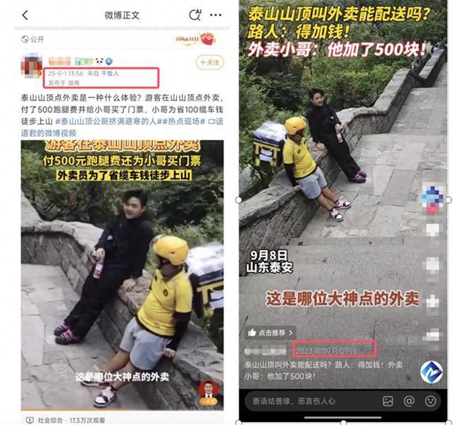 今年五一假期,山东泰山景区一如即往地受到游客欢迎。5月1日,有博主转发了一段有人在泰山山顶点外卖的视频,引发网友好奇。极目新闻记者查询发现,在2023年9月,便有人在短视频平台上发布同一视频。2日,极目新闻记者也咨询了当地从事外卖的商家及骑手,他们均表示送至泰山山顶的外卖或无人接单配送。