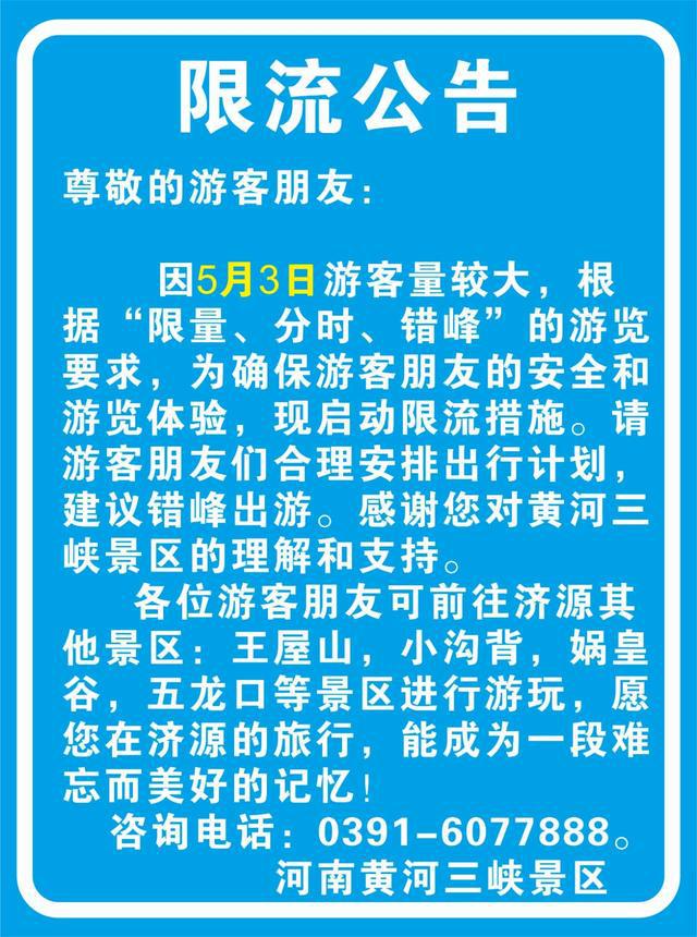 因5月3日游客量较大,根据“限量、分时、错峰”的游览要求,为确保游客朋友的安全和游览体验,现启动限流措施。请游客朋友们合理安排出行计划建议错峰出游。