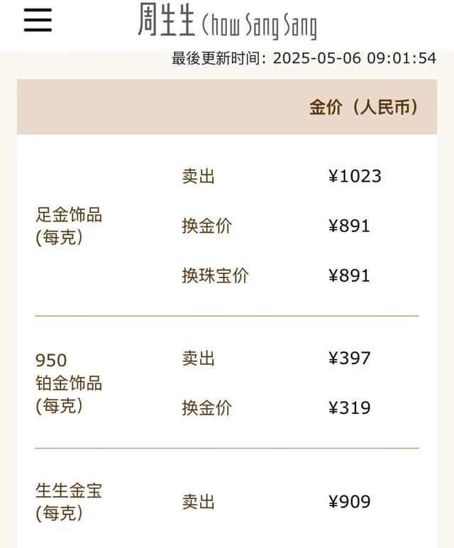 国内各品牌金饰价格也随之上扬,不少品牌克价再次突破千元。中新经纬6日查询发现,周大福金饰价格为1026元/克,较前一日上涨28元/克;周生生金饰价格为1023元/克,较前一日上涨23元/克;老庙黄金金饰价格为1022元/克,上涨31元/克。