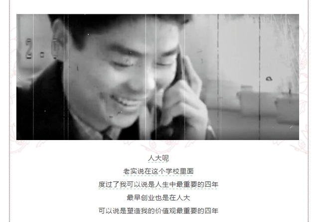 刘强东还表示:“人大呢,老实说,在这个学校里面度过了,我可以说是人生中最重要的四年。最早创业也是在人大,可以说是塑造我的价值观最重要的四年。”