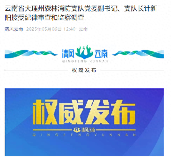 主动投案!云南省大理州森林消防支队党委副书记、支队长计新阳被查