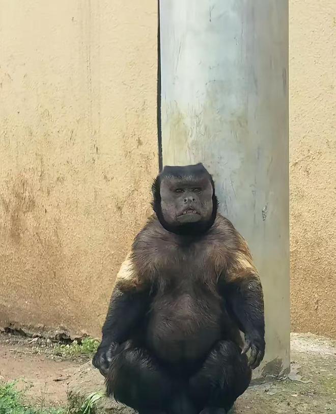 要说这只叫“大壮”的黑帽悬猴,原本在合肥野生动物园里就是个“显眼包”。巴掌大的脸上长着棱角分明的国字脸,配上一双圆溜溜的小眼睛,再加上总是佝偻着背、双手交叠的“老干部”姿势,活脱脱像个偷穿了猴毛的人间观察员。五一期间,有游客拍下它蹲在假山上左顾右盼的视频,配文“这猴子长得太有个性了,丑得让人移不开眼”,没想到这条视频直接爆火,点赞量短短几天就突破百万,全国各地的游客都慕名而来,就为了看看这只“猴界方脸担当”。