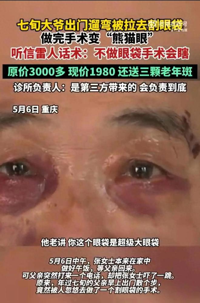 70岁大爷被忽悠割眼袋,诊所的“忽悠术”很专业,告诉爹妈别上当