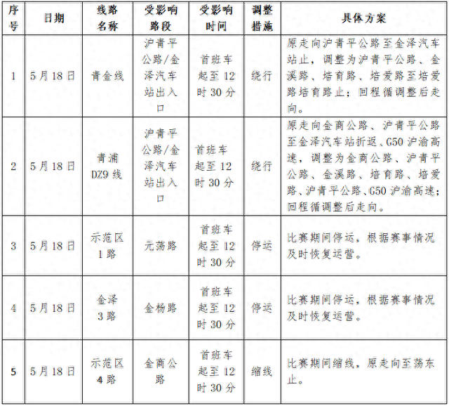 据青浦区新闻办介绍,“2025长三角国际铁人三项赛”将于5月17日至18日在青浦区大观园及周边区域举办,根据比赛线路走向及各路段交通管制安排,共有5条公交线路将采取临时调整措施。具体如下↓