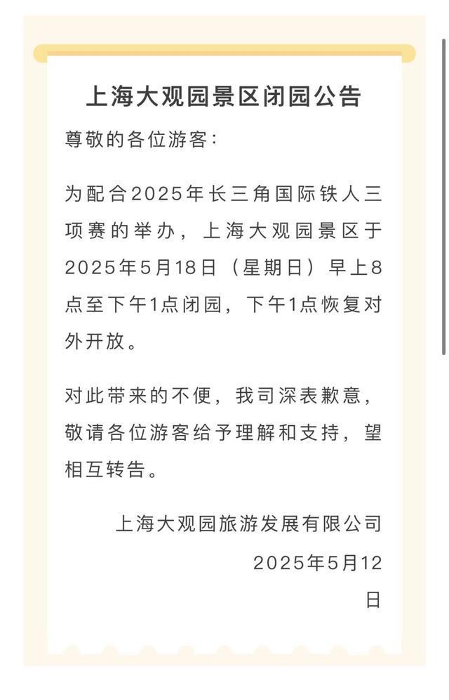 最新!上海景区突发闭园公告!本周末,上海5条公交线路临时调整