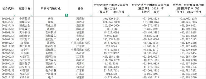其中,中南传媒与山煤国际现金流同比降幅惊人,分别达221072.13%、208684.60%。
