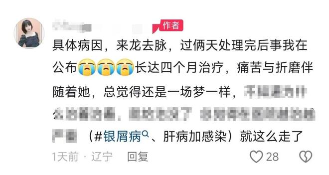 说起晁琳,在当地也算小有名气。她从向阳村走出来,和摄影师老公一起经营的舞蹈馆成了“网红打卡地”。看她以前的视频,既能卡点跳出超有力量感的爵士舞,又能突然来段魔性扭腰的搞笑片段,尤其是和老公搭档跳舞时,两人动作笨拙却透着股子甜蜜,评论区总有人笑称“又被喂狗粮了”。谁能想到,去年12月最后一条视频后,短短四个月,就传来噩耗。丈夫在评论区回复网友时说,妻子治疗了四个月,终究还是没挺住,病因是银屑病、肝病加上感染。