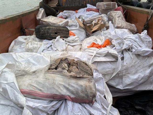 近日,广州海关在珠江口水域查获一起利用渔船藏匿走私冻品案,现场查获牛百叶、猪肚等冻品一批,重约5吨。