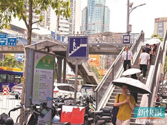 “每天走这个天桥就像‘渡劫’。”在附近上班的李小姐撑着遮阳伞边走边告诉记者,这座没有遮阳棚的天桥是周边数万上班族、就医患者和购物市民的必经之路。记者注意到,短短十分钟内就有超过200人次通过天桥,其中不乏推着婴儿车的家长和拄着拐杖的老人。