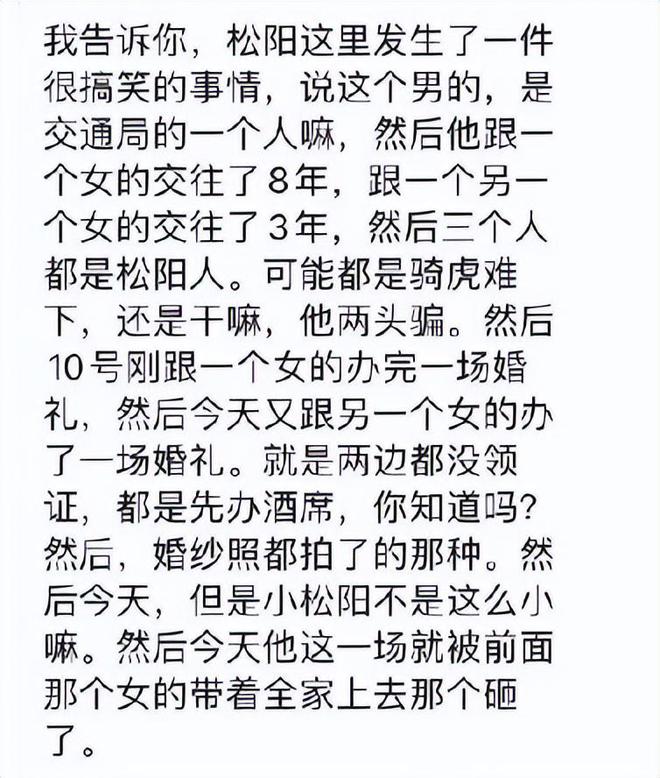 最近,浙江丽水松阳县城的一桩奇事,把网友们的三观都震碎了。一个编外打工仔竟在同一个月内,先后和两个姑娘办了婚礼,两边亲友都随了份子,直到一条朋友圈曝光真相,两个新娘才发现自己谈了几年的男友,竟然是个"时间管理大师"。这事在网上炸开了锅,评论区比电视剧剧情还热闹,咱们就来聊聊这出荒诞大戏。