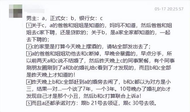 周某当场就傻眼了,拉着黄某就去婚房对峙。俩姑娘这才知道,自己一个谈了7年,一个谈了3年,居然都是"隐形女友"。更离谱的是,潘某还打算5月21号先跟黄某领证,30号再跟周某领证,以为结婚证能"分期办理"。这事闹到单位后,交通局直接把潘某开除了,可网友们的瓜才刚刚开始啃。