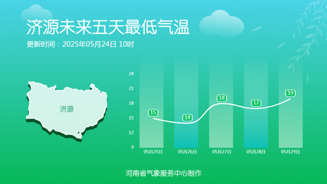 今天下午到夜里,晴天间多云,偏北风转偏南风2到3级。最高气温:24到25度。最低气温:15到16度。