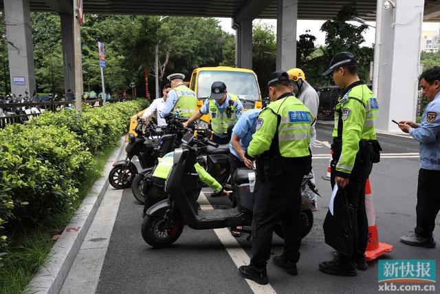 为进一步优化地铁站口周边交通秩序,广州交警将在常态化路面拦查的基础上,同步查处停放在道路上的涉及未悬挂本市有效号牌,号牌倒挂、侧挂、破坏或者故意污损、遮挡等交通违法行为的电动自行车,通过张贴宣传告示、依法查处的方式分阶段开展整治(包括扣留车辆、处罚违法人员),进一步提高群众守法出行意识,逐步提升通行秩序。