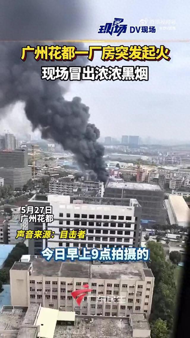 5月27日,广州花都区一仓库起火,现场浓烟滚滚。