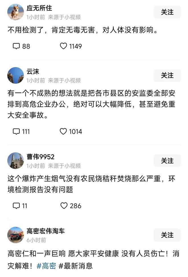 现在应急管理部都派工作组去了,按说这事儿该好好查一查。可您猜怎么着?评论区里的画风简直比事故本身还热闹。有网友冷不丁来一句:“这爆炸产生的烟气啊,没农民烧秸秆严重,环境检测肯定没问题,不用测都知道无毒无害。”这话看着咋就这么不是滋味呢?明眼人都知道,化工厂爆炸跟烧秸秆能是一回事吗?可偏偏就有人拿这话挤兑,您说这心里头能不窝火吗?