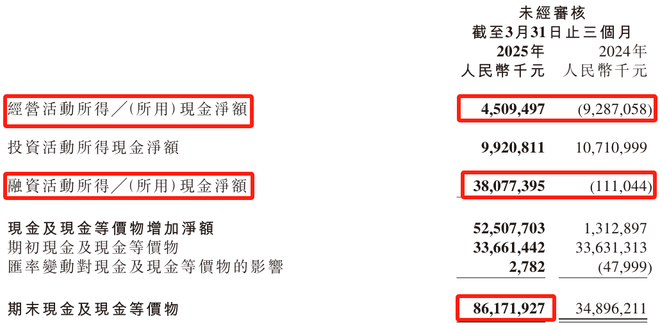 截至今年3月末,小米集团的经营活动现金流净额为45.1亿,和去年同期相比,已经由净流出转为净流入。