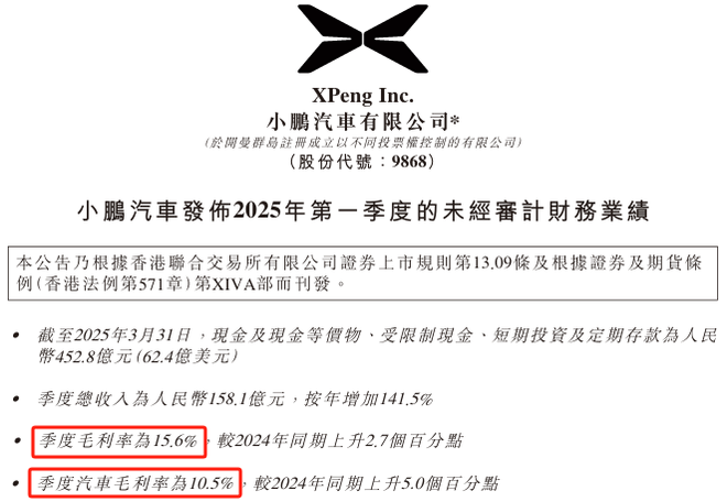 和国内新势力来对比,小鹏汽车Q1的整体毛利率为15.6%,汽车毛利率仅10.5%。