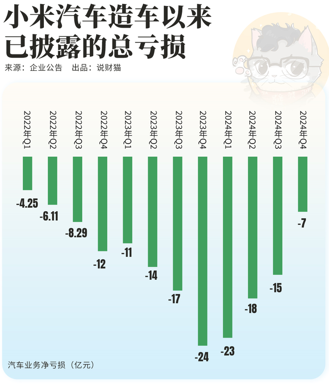 这还只是卖一款车(SU7)就实现亏损收窄,不出意外,估计小米汽车年内就能盈利了。