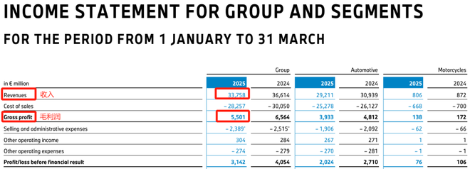 奔驰毛利润是65.64亿欧,算下来毛利率还不到20%(19.76%)。