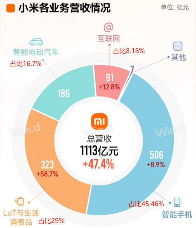 但是小米汽车的收入占比,已经去到16.7%,会成为小米重要的增长极。