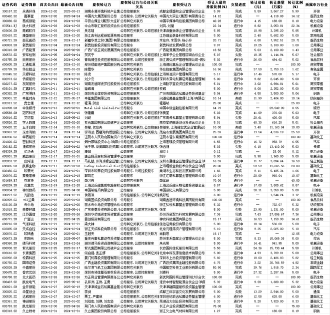 进入到2024年12月,还有多家上市公司发布了重要股东协议转让股权的相关公告。其中不乏ST公司,转让股份超过总股本5%的公司也不在少数。
