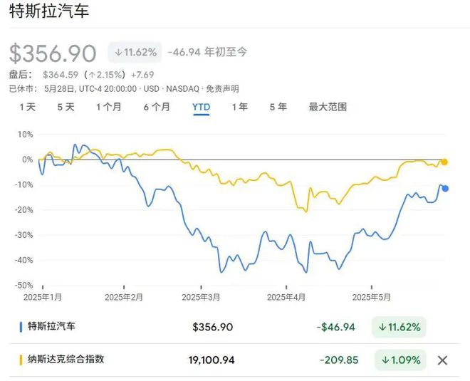 今年以来,特斯拉股价震荡,下跌了12%,而纳斯达克指数才跌了1%。最惨的时候,特斯拉股价一度跌至214.250美元,相较去年12月时488.540美元的股价顶点,直接腰斩过半。