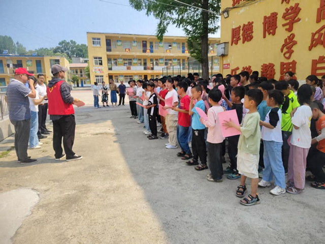 活动现场,工作人员向学生发放精心汇编的 “致家长的一封信” 宣传页,内容涵盖防溺水 “七不准” “两会”原则、食品安全、防范电信诈骗警示语等内容,引导学生和家长共同学习。同时,号召学生将宣传页带回家,与家长一起阅读,形成家校共育的安全防护网。