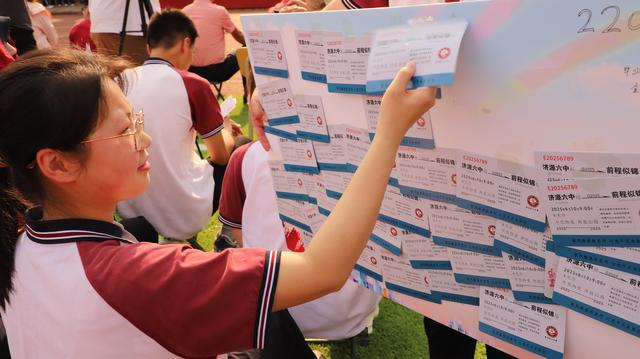 “未来之约”时间胶囊缓缓封存,那些写在纸条上的梦想,将在时光里酝酿,等待十年后的绽放。2203班王加玉同学以真挚的发言分享追梦故事,激励同窗勇敢前行。教师们的粉色短袖像一片温柔的云,他们为学生送上糖果与祝福,并在“毕业车票”上写下殷切赠言。