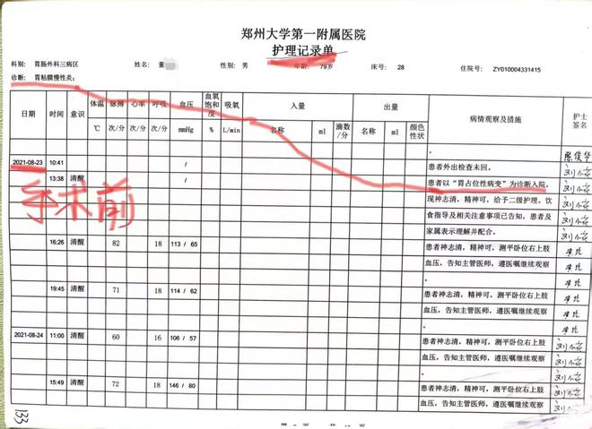 据5月29日的报道称,老爷子家在郑州二七区,2021年8月的时候,老爷子上腹痛了十多天,女儿董大姐赶紧带着去了当地最大的医院——郑大一附院,挂了胃肠外科专家号。结果见到的是专家的学生,做了CT检查后说就是炎症,不用吃药回家养着。董大姐正准备走呢,医生又说“要不还是住院吧,现在医院人少,能照顾得好”。想着疫情期间来回跑麻烦,一家人就同意住院了。