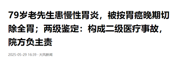 老汉患慢性胃炎,医生竟按胃癌晚期切除全胃,事发郑州,详情曝出