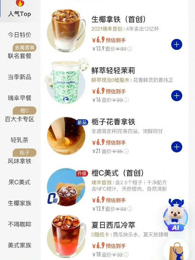 5月30日,有消费者下单时发现瑞幸咖啡迈入了“6块9”时代,“以前一般是9块9最低,今天发现6块9可以买店内多款饮品”。需要注意的是,此前奶茶与咖啡行业的价格战正是由瑞幸咖啡掀起,但最低价也仅限9.9元/杯。