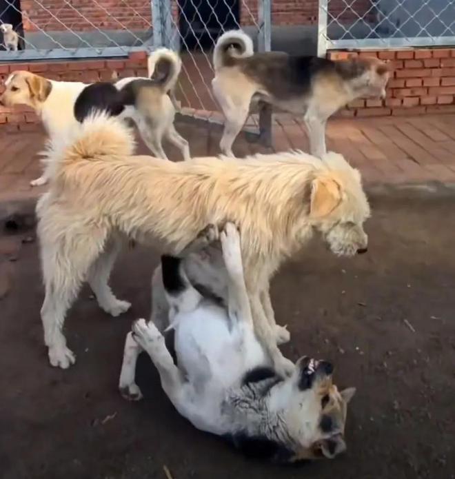 事情是这么起的:胡子大叔平时爱拍自家狗打架的视频,那天几只狗正撕咬得不可开交,场面乱成一锅粥的时候,长毛迈着小碎步就过来了,那叫一个淡定。更神的是,它路过的地方,不管多大的狗都吓得夹紧尾巴,有只比它大一圈的黑狗直接趴地上不敢动,等它走了才敢起来。最绝的是它走到打架的狗堆里,所有狗立马停手,有只狗直接四脚朝天躺地上“认怂”,长毛就踩了它肚皮一下,跟说“别打了”似的,全程没叫唤一声,那气场愣是把一群烈犬镇住了。