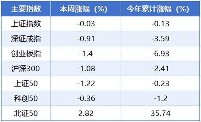指数层面,本周A股主要指数仍以调整为主。其中,创业板指跌幅较大,本周下跌1.4%,今年以来累计下跌6.93%;沪深300、上证50本周均跌超1%,而上证指数微跌0.03%。值得关注的是,北证50延续了良好的涨势,本周上涨2.82%,今年以来累计上涨35.74%。