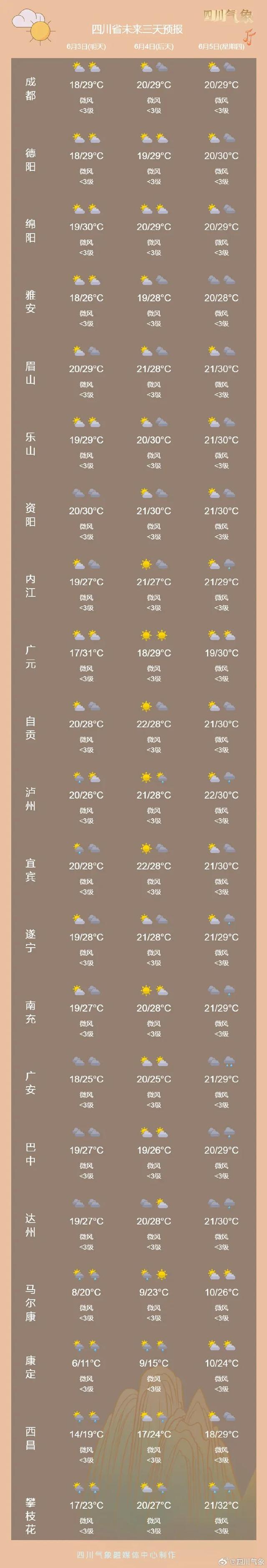 接下来两天,盆地以多云间晴天气为主,川西高原和攀西地区有阵雨或雷雨,局部中到大雨。
