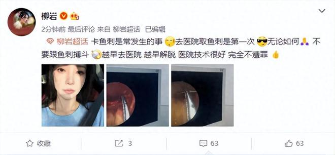 说起来现在明星分享生活日常真是挺常见的事儿,但前几天柳岩在社交平台发的一条动态,着实让不少人跟着捏了把汗。她那回不是分享穿搭也不是晒工作,而是正儿八经地聊了回“卡鱼刺”的经历,字里行间全是“早去医院早解脱”的叮嘱,这话从她嘴里说出来,好多人都觉得有必要听听,毕竟明星也是普通人,遇上这种生活里的突发状况,经验分享说不定能帮上大忙。