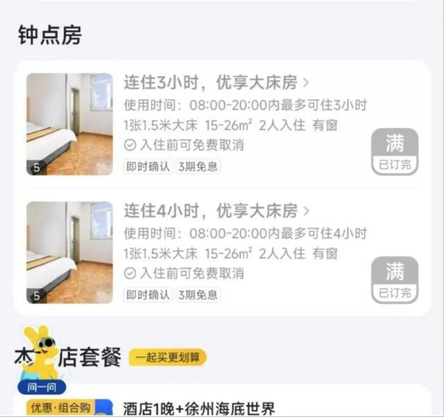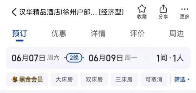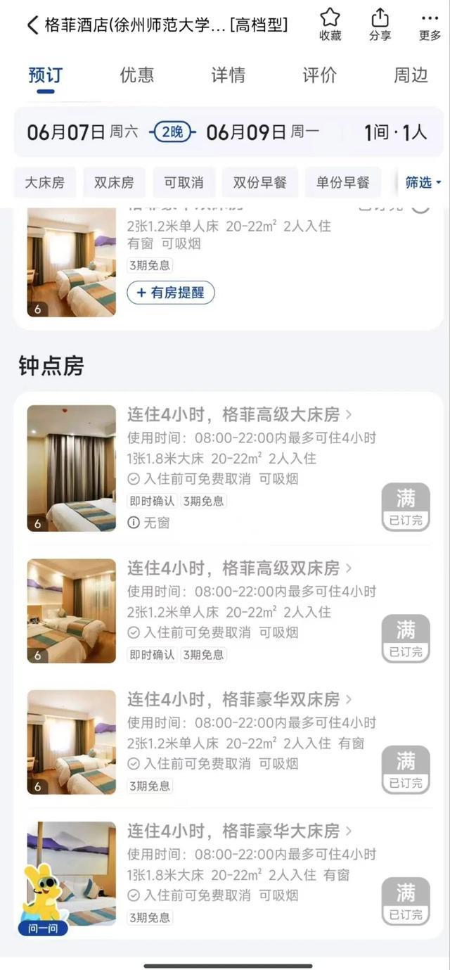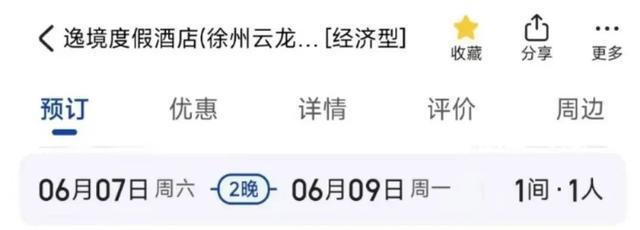 距离徐州高级中学步行700米的逸境度假酒店,在6月7日至6月9日期间,钟点房已经全部售罄。