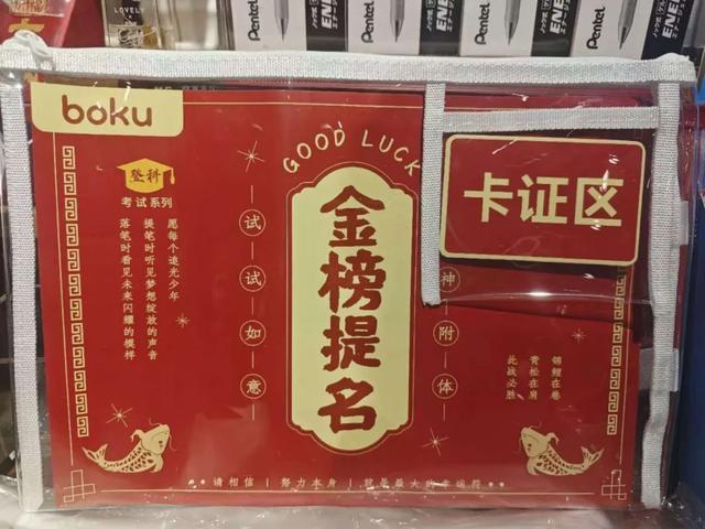除了住宿和餐饮,文具店也迎来了销售旺季。在一些文具店,符合高考要求、大红配色、名字吉利的“孔庙祈福”“连中三元”等文具备受欢迎,线上线下均销售火热。