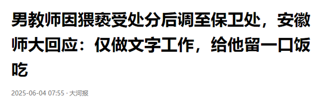 男教师因多次猥亵女生受处分,现在居然调至保卫处工作,网友炸锅