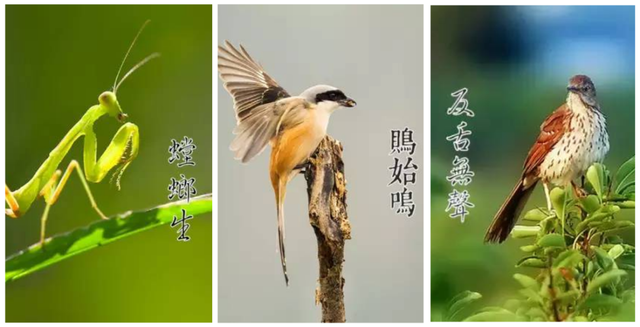 在芒种节气时,螳螂卵因气温变化而破壳生出小螳螂;喜阴的伯劳鸟开始在枝头出现,并且感阴而鸣。而反舌鸟,却因感应到了气候的变化,慢慢停止了鸣叫。