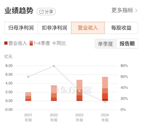 各产品在技术上相辅相成,在商业模式上独立销售、相互引流,为公司业务的稳健发展提供多个引擎,支撑广立微的经营业绩持续向好。尤其是营收规模方面,广立微的营业收入由2021年的1.98亿元增长至2024年的5.47亿元。自上市以来,该公司营业收入保持逐年增长。