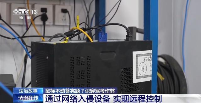 在一场驾考理论考试中,考生们穿着防作弊服端坐答题,看上去一切如常,然而谁都没有想到,其中一名考生的手放在鼠标上根本没有动,但电脑桌面却在自动答题,这是怎么做到的?